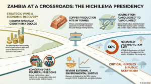 Despite these long-term economic strategies, Hichilema’s administration is grappling with severe immediate challenges. He inherited a national debt default and has had to navigate the COVID-19 pandemic, global inflation driven partly by the war in Ukraine, and one of the worst droughts in Zambia’s history in 2024. Because the dividends of his infrastructure and mining deals are not expected to fully materialize for another five to ten years, many citizens are frustrated; polling shows that two-thirds of Zambians feel the country is heading in the wrong direction.