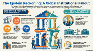 23 Feb. 2026 /Mpelembe Media — The provided sources detail the immense global fallout following a massive 2026 Department of Justice document release concerning deceased sex trafficker Jeffrey Epstein. Government investigations and news reports highlight how JPMorgan Chase executives reportedly ignored internal alarms to facilitate Epstein’s financial activities for nearly two decades. The materials reveal a vast network of enablers, leading to the arrest of Andrew Mountbatten-Windsor and the resignations of prominent figures like Goldman Sachs lawyer Kathryn Ruemmler and UK Ambassador Peter Mandelson. Academic institutions like Harvard, Columbia, and UCLA are also facing internal reckonings as files expose deep ties between Epstein and various professors or donors. While the FBI maintains there is no evidence of a specific “client list” or blackmail, the documents have sparked a wave of accountability across global politics, finance, and elite social circles. Ultimately, the sources illustrate a systemic failure of high-level oversight that allowed Epstein to maintain influence long after his initial criminal convictions.