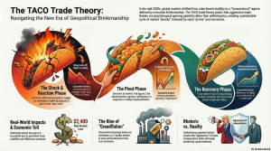 7. Conclusion: The Long-Term Cost of Uncertainty While the TACO trade offers short-term gains for the nimble, it is accelerating a “balkanization” of global trade. The IMF warns that the market’s current “complacency” regarding these risks is dangerous. We are seeing a world designed to “out-maneuver” the United States.The most significant warning comes from New Delhi; a leading Indian think tank recently noted that “no deal with the U.S. is ever final.” As nations like India and China “design out” the U.S. to avoid executive whims, we must ask: Are the temporary rallies of 2025 worth the permanent fragmentation of the global economic order? The “Art of the Reversal” may win the news cycle, but it is losing the century.