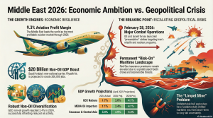 Capitalization of the Aviation Hub: The Middle East’s “Aviation Hub” status, supported by sovereign wealth and regional regulators, now serves as the primary engine for non-oil economic resilience. Investment should prioritize these coordinated infrastructure sectors as the most stable returns in a volatile geo-economic landscape.