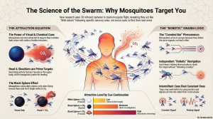 Introduction: The Summer StruggleWe’ve all been there: a perfect summer evening ruined by the realization that you have been chosen as the primary buffet for the local mosquito population. While your friends relax undisturbed, you are trapped in a frantic dance of swatting and scratching. It feels personal, almost like a targeted vendetta. However, new research published in Science Advances reveals that your status as a “mosquito magnet” isn’t a stroke of bad luck—it’s the result of a cold, calculated algorithm.By tracking the flight patterns of Aedes aegypti using 3-D infrared cameras, researchers from Georgia Tech and MIT have finally decoded the “robotic rules” that govern how these insects hunt. If you want to stop being the target, you have to understand the code.The Deadly Combo: Visuals Meet BreathTo figure out what makes a mosquito commit to a target, the Georgia Tech team placed hundreds of insects into a specialized chamber to observe their reactions to different stimuli. The results weren’t just about what the mosquitoes liked; they were about the specific “logic of the lock-on.”The researchers tested several scenarios to see what triggered a strike: