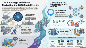 Build a digital culture, then acquire the Archipelago.5. The Taxman’s Digital Upgrade: The End of “Loophole Nomadism”While technology has empowered the Sovereign Individual, it has also provided the state with a massive digital upgrade. The era of “grey area” nomadism—where one could simply drift between borders to evade tax residency—has been systematically dismantled.According to the OECD’s International Migration Outlook 2025 , the population of mobile workers grew by 17% heading into 2026. In response, jurisdictions have tightened their grip. Data from Stripe shows that mandatory B2B e-invoicing is now the standard in Poland, Belgium, and France , effectively ending the ability to hide economic activity.The irony of 2026 is profound: the same digital tools that allow you to work from a villa in the Algarve allow the government to track your “economic interests” and “travel patterns” with surgical precision. The “183-day rule” is no longer a suggestion; it is a hard-coded reality enforced by international information exchange. Sovereignty is fragmenting, but for those who remain within the traditional system, the taxman has never been more omniscient.