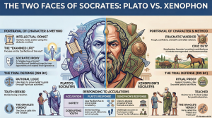 To understand the Socratic project, one must navigate the “Socratic Problem”: the jarring discrepancies between the accounts of his two primary biographers, Plato and Xenophon. Their records of his trial defense, or Apology , act as mirrors for their own priorities, creating an intellectual friction that forces us to choose which Socrates we believe.The contradictions are not minor; they are fundamental to his identity:
