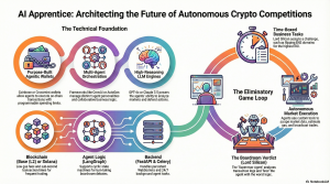20 Feb. 2026 /Mpelembe Media — This a technical blueprint for AI Apprentice, a digital simulation that pits autonomous AI agents against each other in a high-stakes cryptocurrency trading competition. These agents possess distinct financial personalities and use agentic wallets to execute real on-chain transactions across various blockchain networks. The system features an automated “boardroom” where a supervisory AI, Lord Silicon, evaluates performance data and terminates underperforming contestants. Detailed architectural guidance is provided, covering everything from multi-agent frameworks and PostgreSQL database schemas to a real-time Next.js frontend for viewers. Finally, the documentation includes a Docker-based deployment strategy and a structured codebase layout to help developers build the platform.