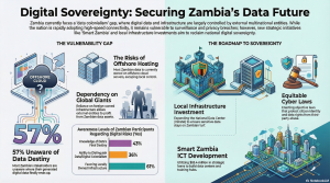Data Sovereignty and Policy Frameworks: As digital adoption grows, Zambia is working to mitigate cybersecurity risks and the threat of “data colonialism”. The government has enacted foundational legislation, such as the Data Protection Act and Cyber Security and Cyber Crimes Act. By partnering with diversified international tech providers, Zambia is building a “hybrid cloud model” that ensures both high-performance computing and sovereign control over sensitive national data.